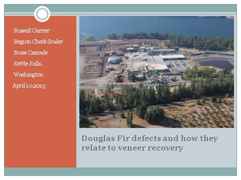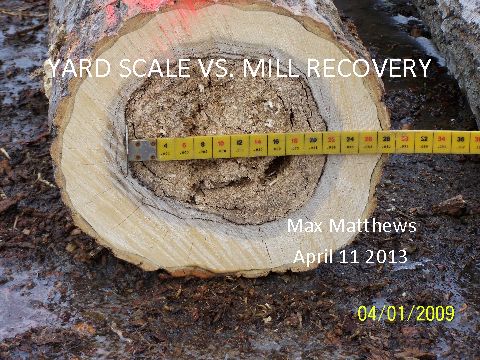 | In the morning the group went to the Great Western sawmill in Everson Washington to scale logs . The logs were reviewed and there was quite a bit of discussion regarding grading procedures and rules. |
