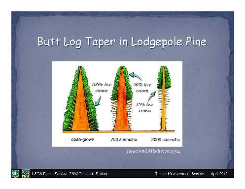 assumptions used in the USFS Region 6 taper tables for butt-cut logs